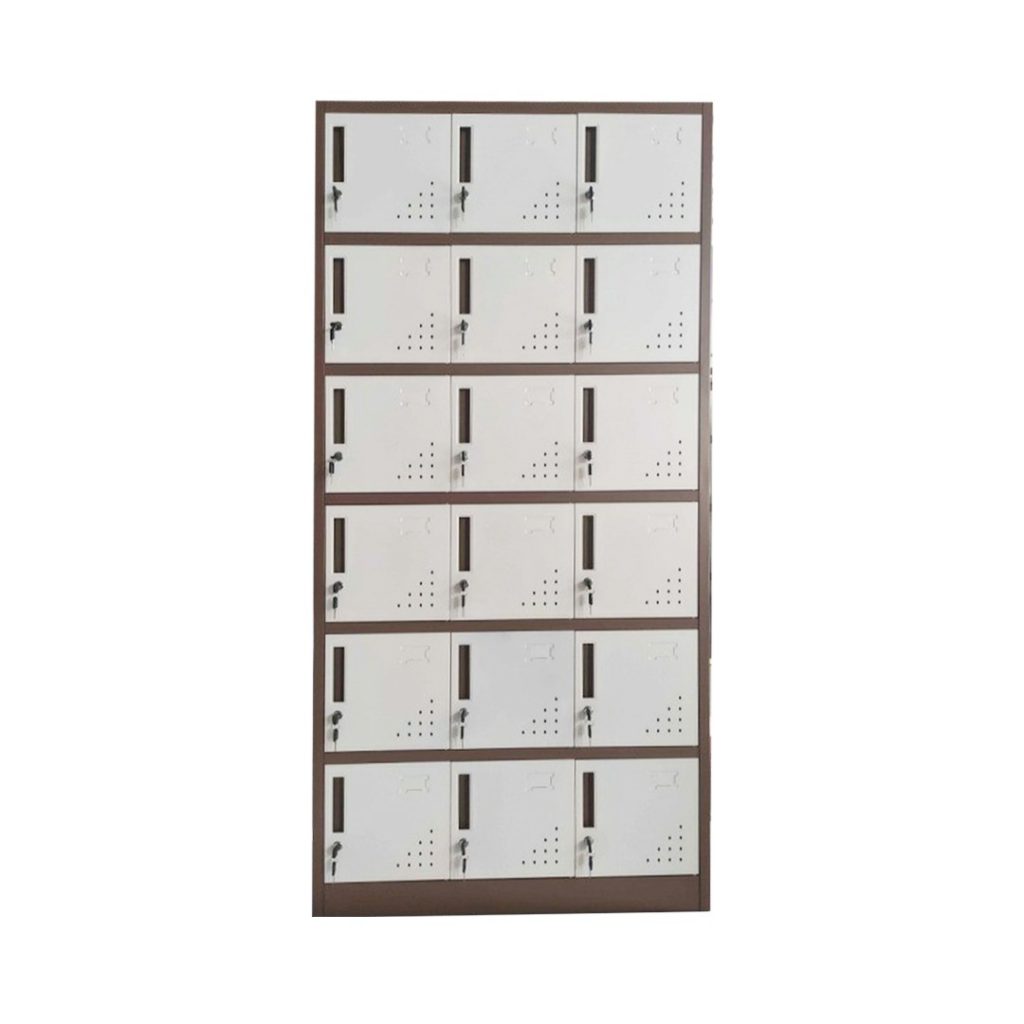 Locker Besi 18 Pintu Koenig K-LS318 Spesifikasi : Bahan Plat Besi Ukuran 900 x 400 x 1850 mm Warna Kombinasi