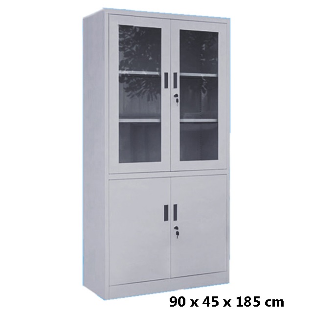 Lemari Besi VG203 VIP Gold Pintu Ayun 1/2 Kaca Spesifikasi : Uk. W900 x D450 x H1850 mm Bahan Plat