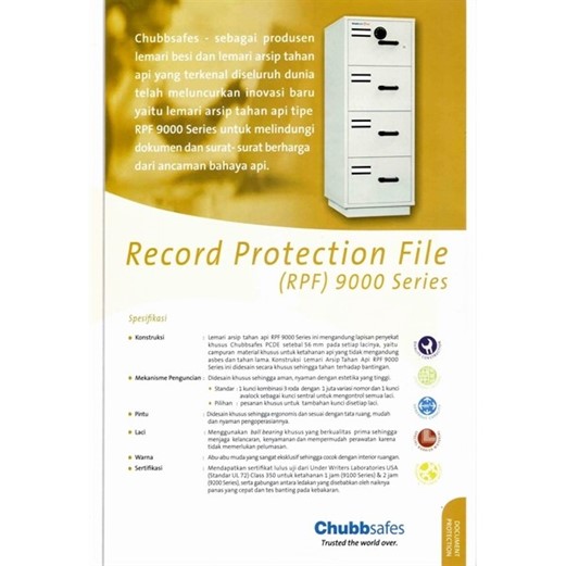 Brankas Chubb Type Viper Size 10 EL Dimensi luar (mm) : 300 H x 360 W x 300 D Weight