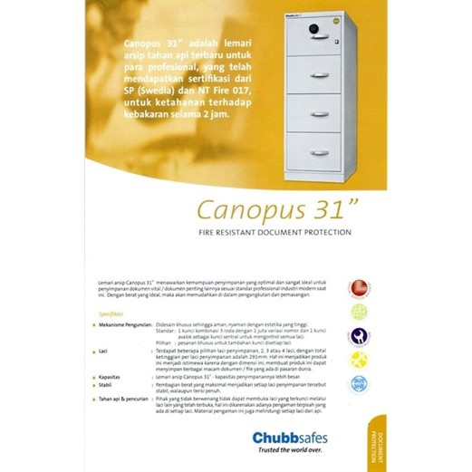 Brankas Chubb RPF 9102-2 Laci Dimensi luar (mm) : 817 H x 551 W x 780 D Dimensi dalam (mm)