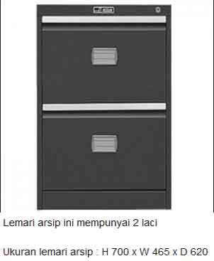Filling Cabinet 2 Laci, merupakan filling cabinet yang memiliki 2 laci , yang rata – rata memiliki kunci central lock , satu kunci untuk semua laci. Filling Cabinet ini memiliki material Metal besi yang sangat kokoh.