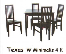Fortuna Texas W Minimalis 4 K + Mj 1 Set Meja Makan Texas 4 Kursi Dari Jati