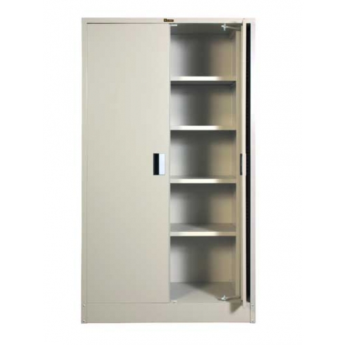 Lemari dengan bukaan digeser dan juga memiliki daun pintu yang terbuat dari plat