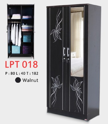 LPT 018 – Lemari Pakaian 2 Pintu Ukuran : 80 x 40 x 182 cm Warna : Walnut