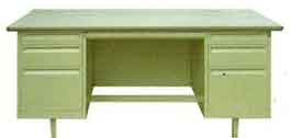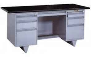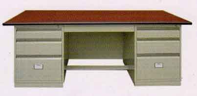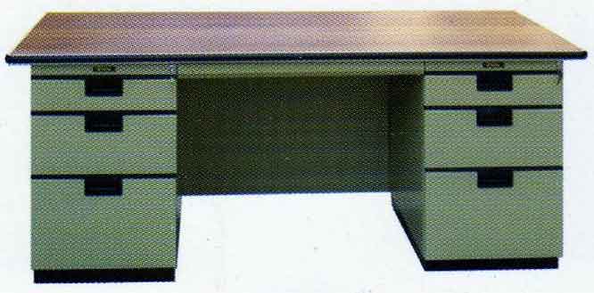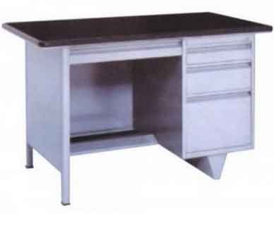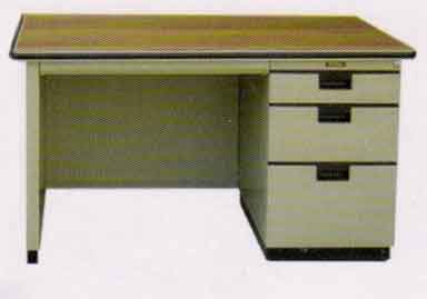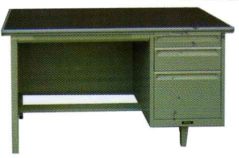 Keunggulan: 1. Meja kantor dengan permuakaan atas dilapisi linolium. 2. Dilengkapi dengan list aluminium dan pvc. 3. Menggunakan bahan metal