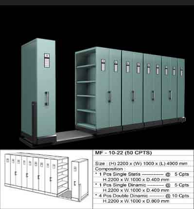 Mobile File System Manual Alba MF-10-22 (50 CPTS) Ukuran: H.2200 x W.1000 x L.4900 mm Composition : 1 Pcs Singe Statis […]
