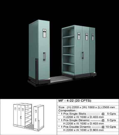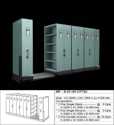 Mobile File System Manual Alba MF-10-18 40 compartment Ukuran: H.1830 x W.1000 x L.4900 mm Composition : 1 Pcs