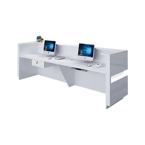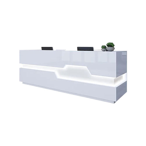 Meja Resepsionis dengan design yang sangat elegan, mewah, modern dan futuristik. Meja ini juga memiliki banyak ruang dan celah untuk kebutuhan dekorasi maupun penempatan produk anda. Meja ini sangat cocok untuk kantor-kantor besar, modern dan executive.